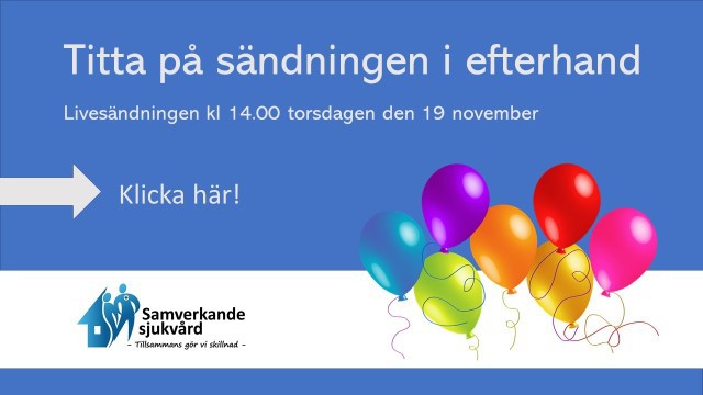 Den 19 november firade Samverkande sjukvård 10-årsjubileum, GötaPris och utmärkelsen Årets brobyggare 2020. Klicka på bilden nedan för att komma till livesändningen som går att se i efterhand. Tryck på symbolen cc i nederkant på filmen och välj "svenska" för att se undertexter.